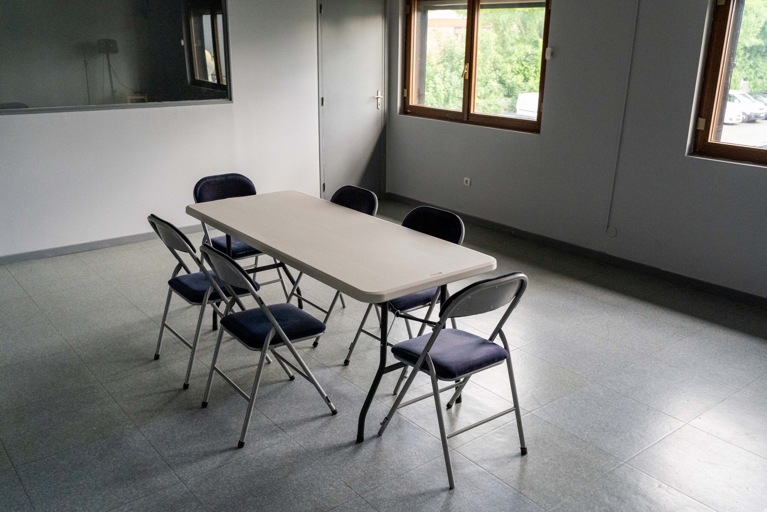 Sono, micros, vidéoprojecteur, tables, chaises, WiFi fibre, climatisation/chauffage et cuisine à l’étage